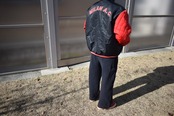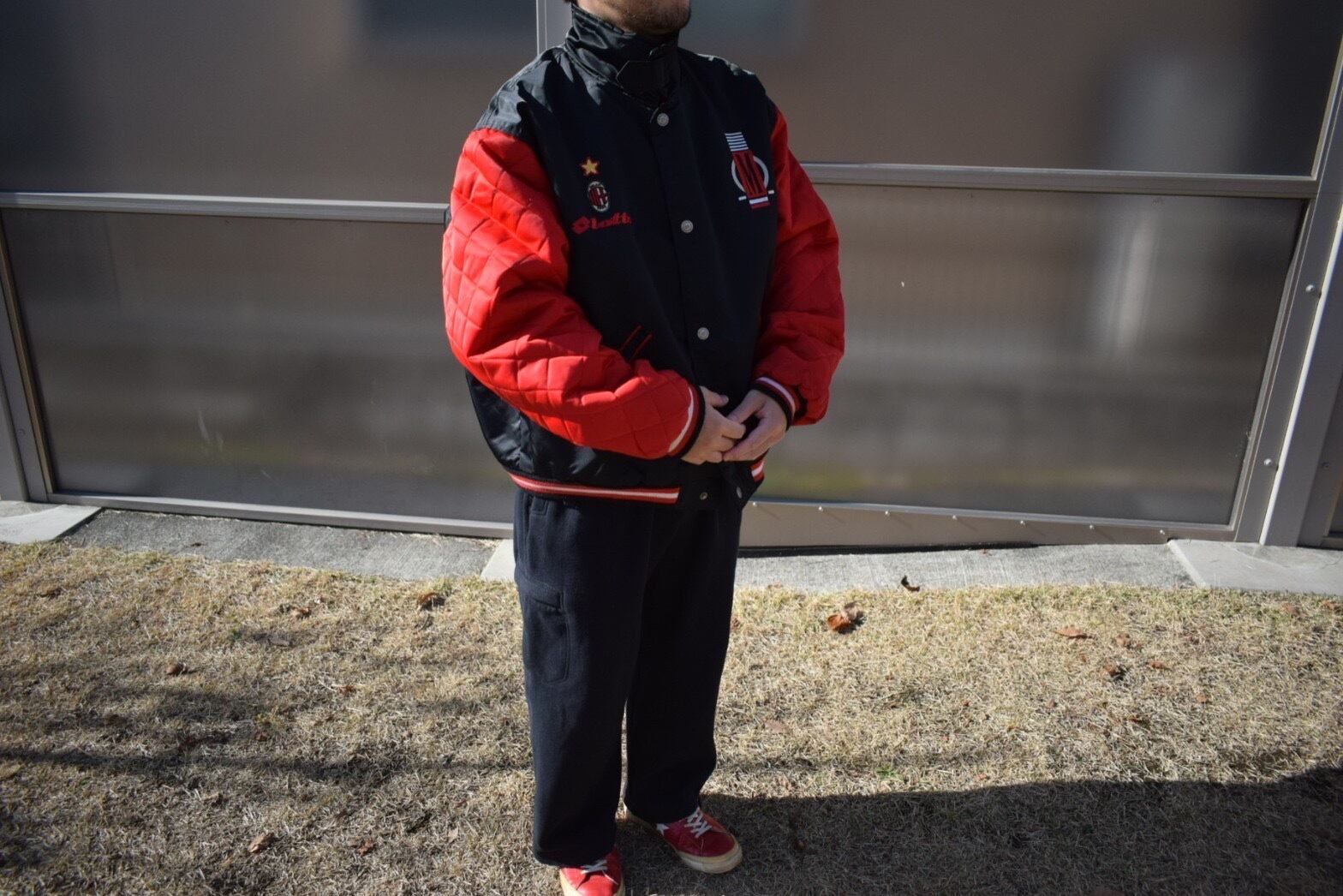身幅広めで中にもしっかり着込めます。襟立てて、ボタン上2つだけ留めるとかもありです。レザージャケットとは違ったギャング感。Lottoなのも良いし、もうめちゃくちゃカッコいいです是非。